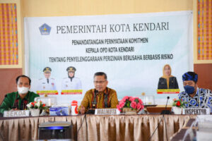 Kendari – Berdasarkan peraturan pemerintah No 5 tahun 2021 tentang penyelenggaraan perizinan berusaha berbasis resiko menjadi acuan tunggal pelaksanaan perizinan berusaha, sehubungan dengan hal tersebut Organisasi Perangkat Daerah (OPD) sektor terkait bersepakat dan berkomitmen untuk menyelenggarakan pelayanan perizinan berdasarkan norma, standar, prosedur dan kriteria perizinan berbasis resiko.