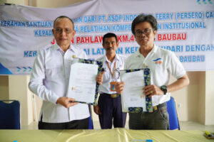 MNC Trijaya Kendari – Balai Pelatihan Vokasi dan Produktivitas (BPVP) Kendari bersama PT ASDP Indonesia Ferry (Persero) Cabang Baubau lakukan penandatanganan Memorandum of Understanding (MoU) tentang penyelenggaraan pelatihan kerja dan bantuan peralatan di Aula Serbaguna PT. ASDP Indonesia Ferry (Persero) Cabang Baubau, Minggu (27/3/2022).