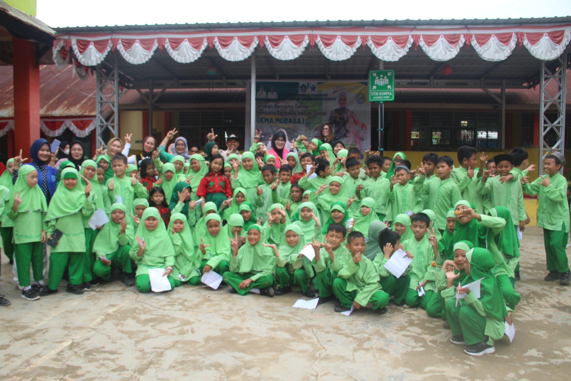 Kegiatan GEMA MOBASA di SDN 88 Kendari ditutup dengan sesi membaca bersama dan interaksi literasi yang berlangsung penuh antusias. (HenQ)