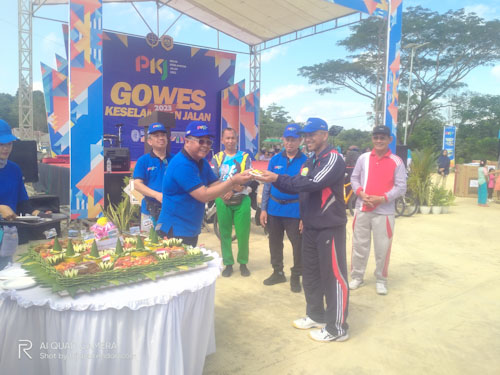 Kendari – Semarakkan puncak Pekan Keselamatan Jalan Tahun 2023, sebanyak 400 peserta Gowes dilepas Penjabat (Pj) Wali Kota Kendari Asmawa Tosepu, start dari Terminal Tipe A Puuwatu menuju THR dan finish kembali di Terminal Tipe A Puuwatu Kendari, Minggu (23/7/2023).