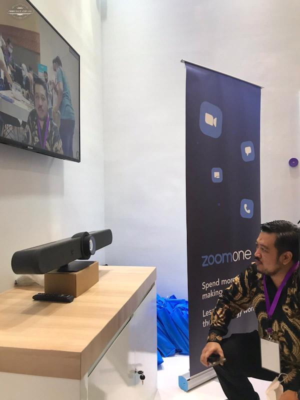 Pada kesempatan kunjungan ke stand expo, Inspektur Syarifuddin berdiskusi serius dengan penyedia layanan _zoom one_ yang berkolaborasi dengan _Logitech_, yang memamerkan teknologi kamera zoom terbaru yang terintegrasi dengan tampilan gambar yang jernih dan sensor gerak pada pembicara.
