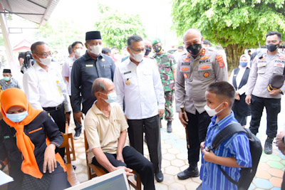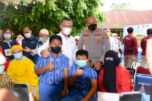 Wali Kota Kendari H. Sulkarnain Kadir, mengapresiasi atas antusiasme masyarakat dan anak sekolah dasar penerima vaksin yang terlihat santai dalam menerima vaksin tersebut.