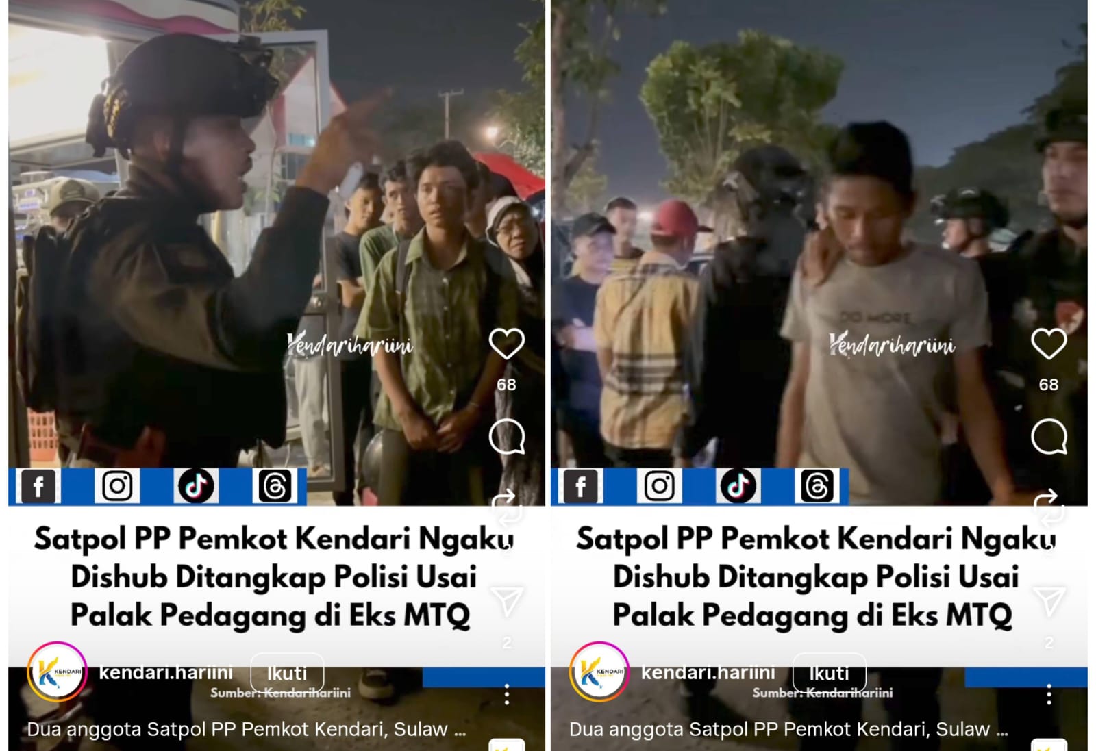 Kendari – Video penangkapan dua orang pria yang mengaku sebagai anggota Satpol PP pada Selasa (4/11/2015) lalu, beredar luas di media sosial, salah satunya di akun Instagram @kendari.hariini. Dalam narasi unggahan tersebut, kedua pelaku disebut sebagai anggota Satpol PP Pemkot Kendari yang diamankan aparat kepolisian.
