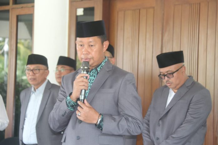 CIBINONG – Penjabat (Pj) Bupati Bogor Asmawa Tosepu melakukan pengarahan sekaligus melepas kafilah Musabaqah Tilawatil Qur’an (MTQ) asal Kabupaten Bogor yang akan bertanding pada lomba Musabaqah MTQ ke XXXVIII Tingkat Provinsi Jawa Barat di Kabupaten Bekasi pada Minggu, 28 April 2024 esok. Pelepasan kafilah MTQ Kabupaten Bogor dilakukan di Pendopo Bupati Bogor, pada Sabtu (27/4/2024).