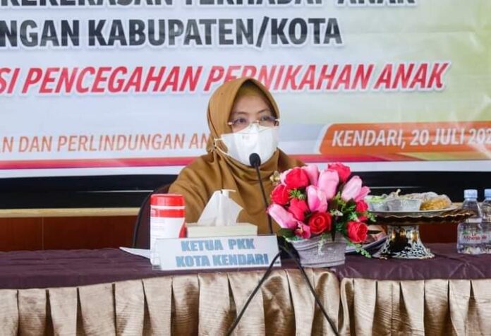Sementara itu, narasumber pada kegiatan ini adalah Ketua TP-PKK Kota Kendari Hj.Sri Lestari Sulkarnain, materi yang disampaikan terkait Peran Keluarga dalam pencegahan perkawinan anak.