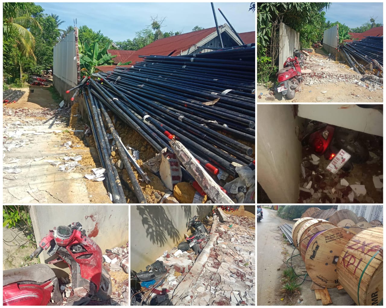 Tembok pagar gudang material milik vendor MyRepublic ambruk dan menimpa tiga motor yang sedang terparkir di lorong dekat gudang tersebut. Peristiwa ini terjadi setelah area tersebut dijadikan tempat penyimpanan material jaringan, seperti drum kabel, gulungan kabel besar, tiang jaringan, dan berbagai infrastruktur telekomunikasi lainnya. Material-material itu disebut warga telah lama diletakkan menempel pada struktur pagar, sehingga menimbulkan tekanan dan ketidakseimbangan hingga akhirnya tembok runtuh.