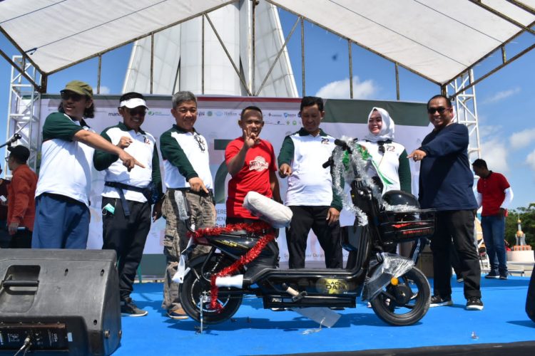 Diakhir acara Pj. Wali Kota Kendari juga mengundi hadiah utama motor listrik yang didapatkan seorang polisi pamong praja Kota Kendari. *