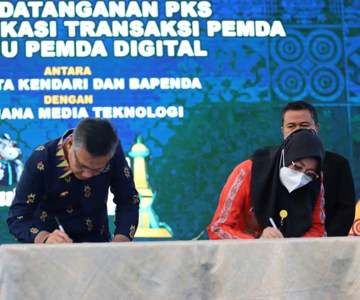 Pada kesempatan itu Wali Kota Kendari bersama PT. Buana Media Teknologi menandatangani kerjasama mengenai Percepatan Elektronifikasi Transaksi pemerintah daerah.