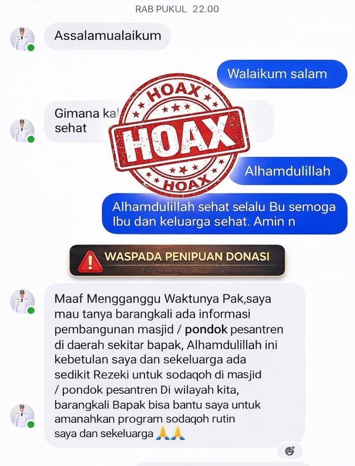 Akun tersebut diduga digunakan oleh oknum tidak bertanggung jawab untuk menjalankan modus penipuan dengan dalih penggalangan donasi pembangunan masjid dan pondok pesantren. Pelaku biasanya menghubungi calon korban melalui pesan pribadi dengan menggunakan bahasa sopan dan bernuansa religius.